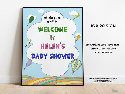 Hot Air Balloon Baby Shower Welcome Sign 16 x 20 inches