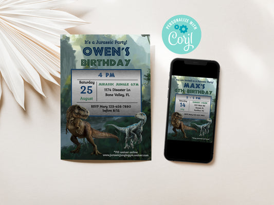 Jurassic Era Dinosaurs Birthday Party Invitation