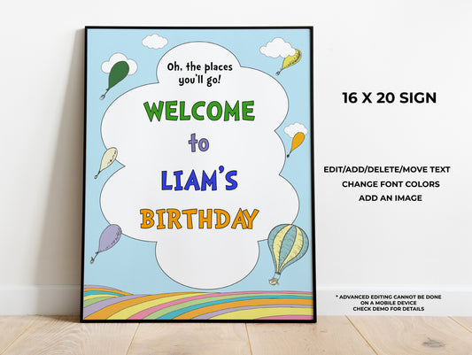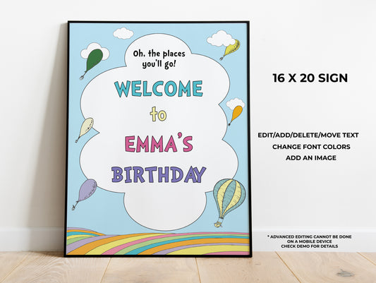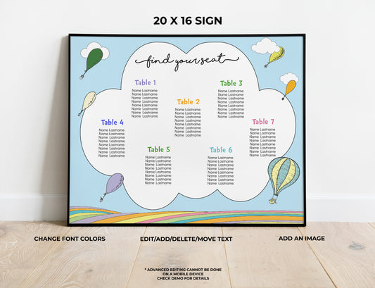 Hot Air Balloon Seating Chart 20 x 16 inches