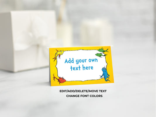 One Fish Two Fish Food Tent Labels - One Fish Two Fish Place cards 3.5 x 2 inches when folded in half