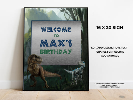 Jurassic Era Dinosaurs Welcome Sign 16x20