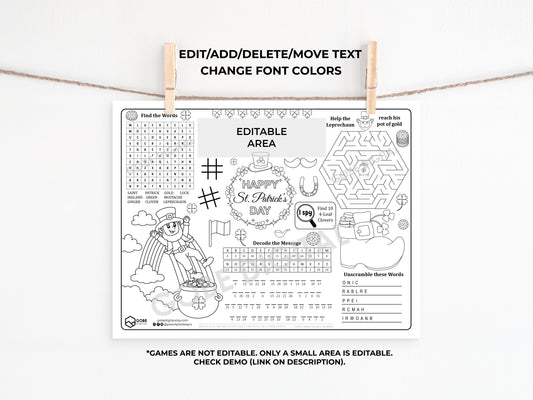 Saint Patrick's Day Activity Sheet Placemat.