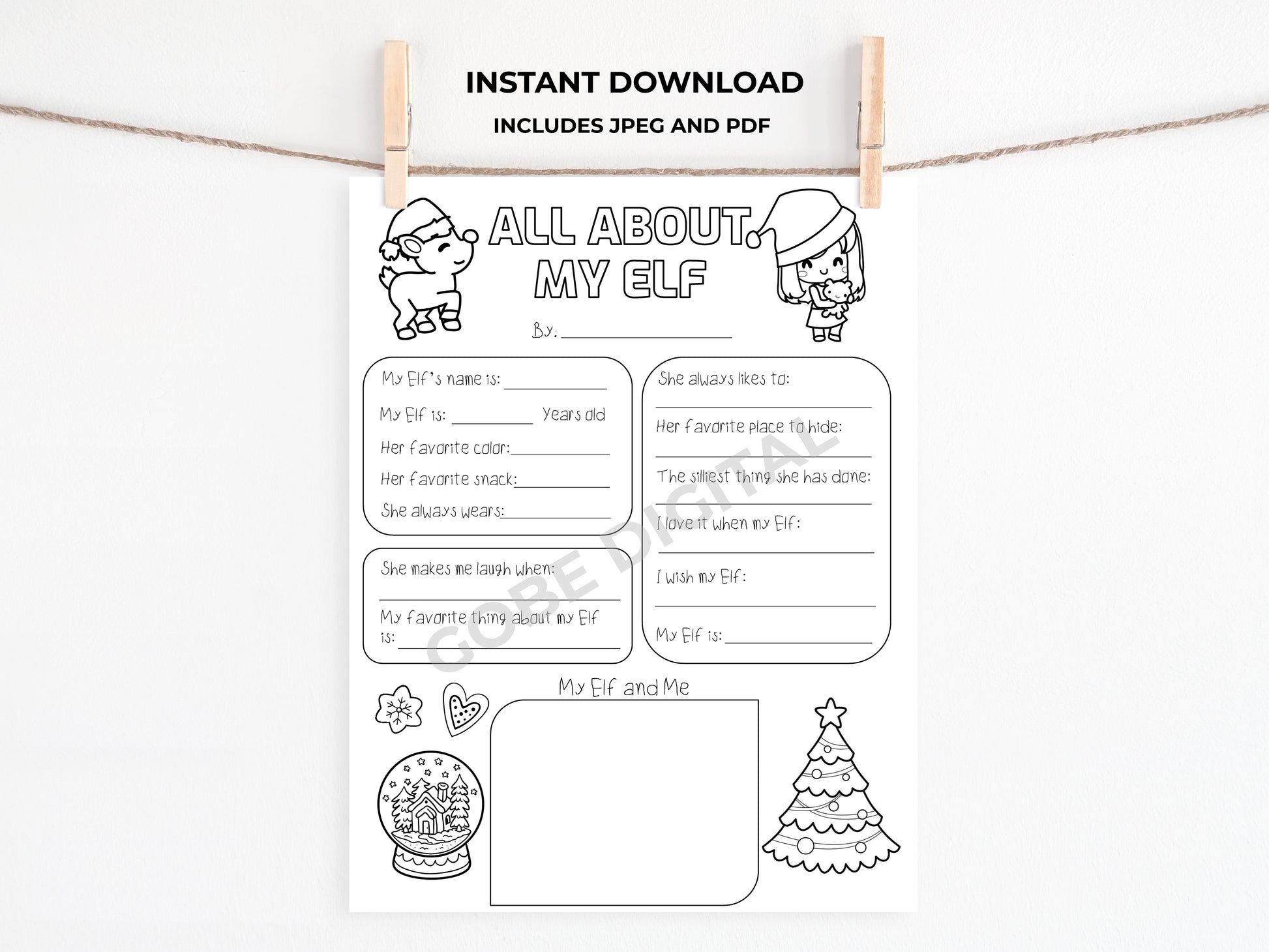All About My Elf Printable. Elf Christmas activity. Elf Activity. Girl Elf activity sheet