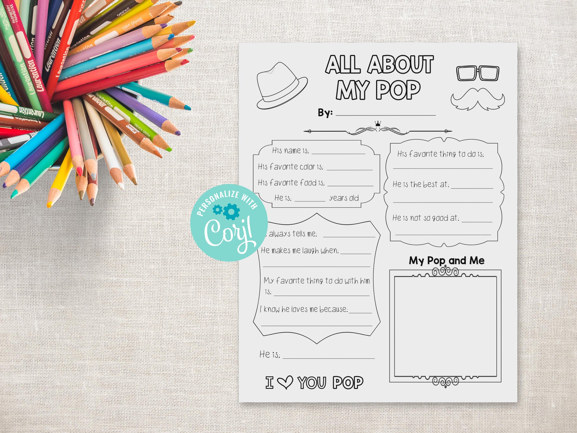 All About my Pop Printable - Father's Day gift for Grandfather - Father's Day Activity - About My Grandfather Printable Kid Gift - Grandfather, Grandpa, Pops, Papa, Poppop, Nandad, Gramps, Poppy, Abuelo, Peepaw