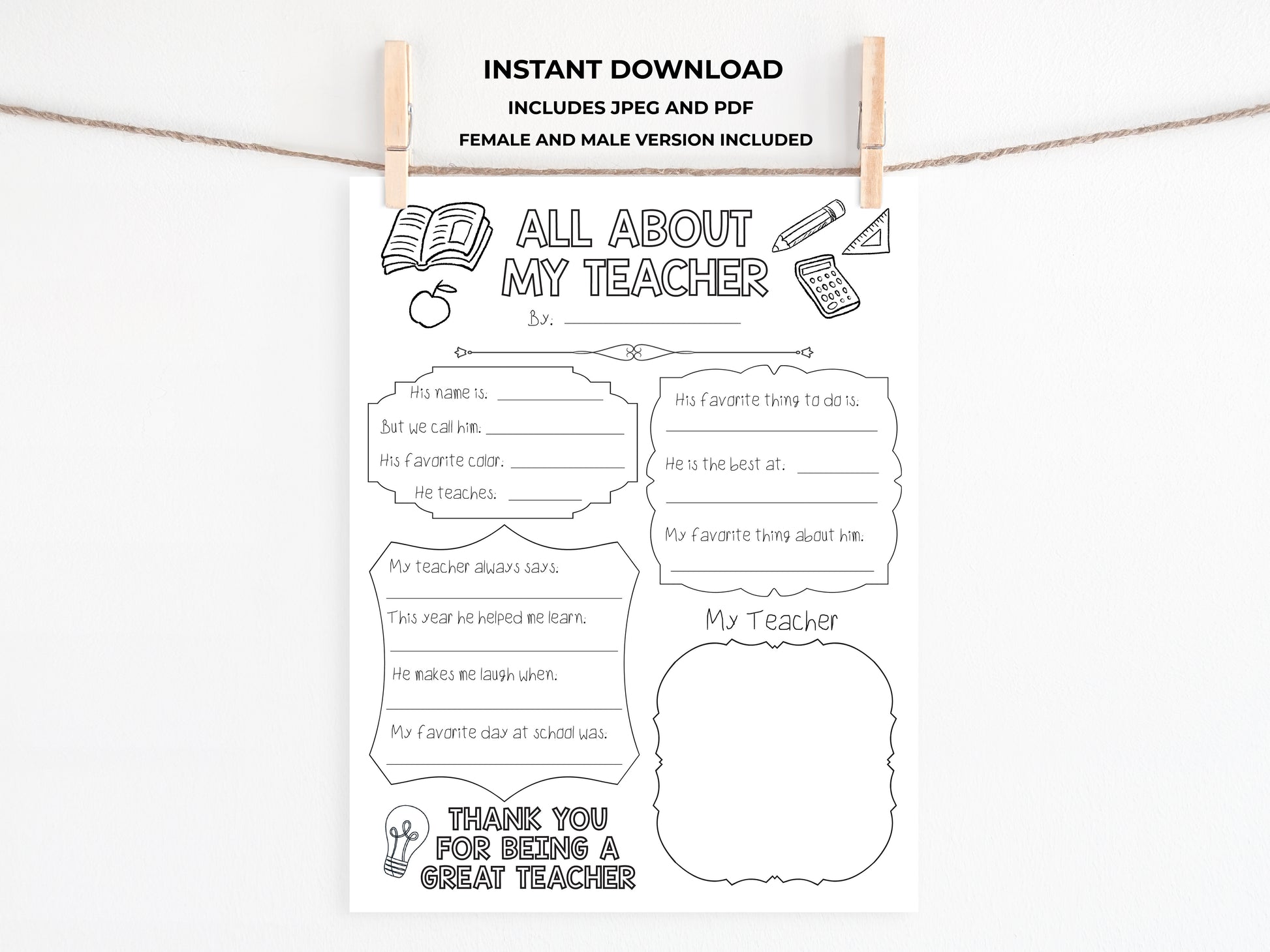 A great idea for a Teacher appreciation gift , a Teacher Activity Kid Gift, it is a DIY Instant Digital Download. You can use as Last day of school printable, or a Teacher gift.