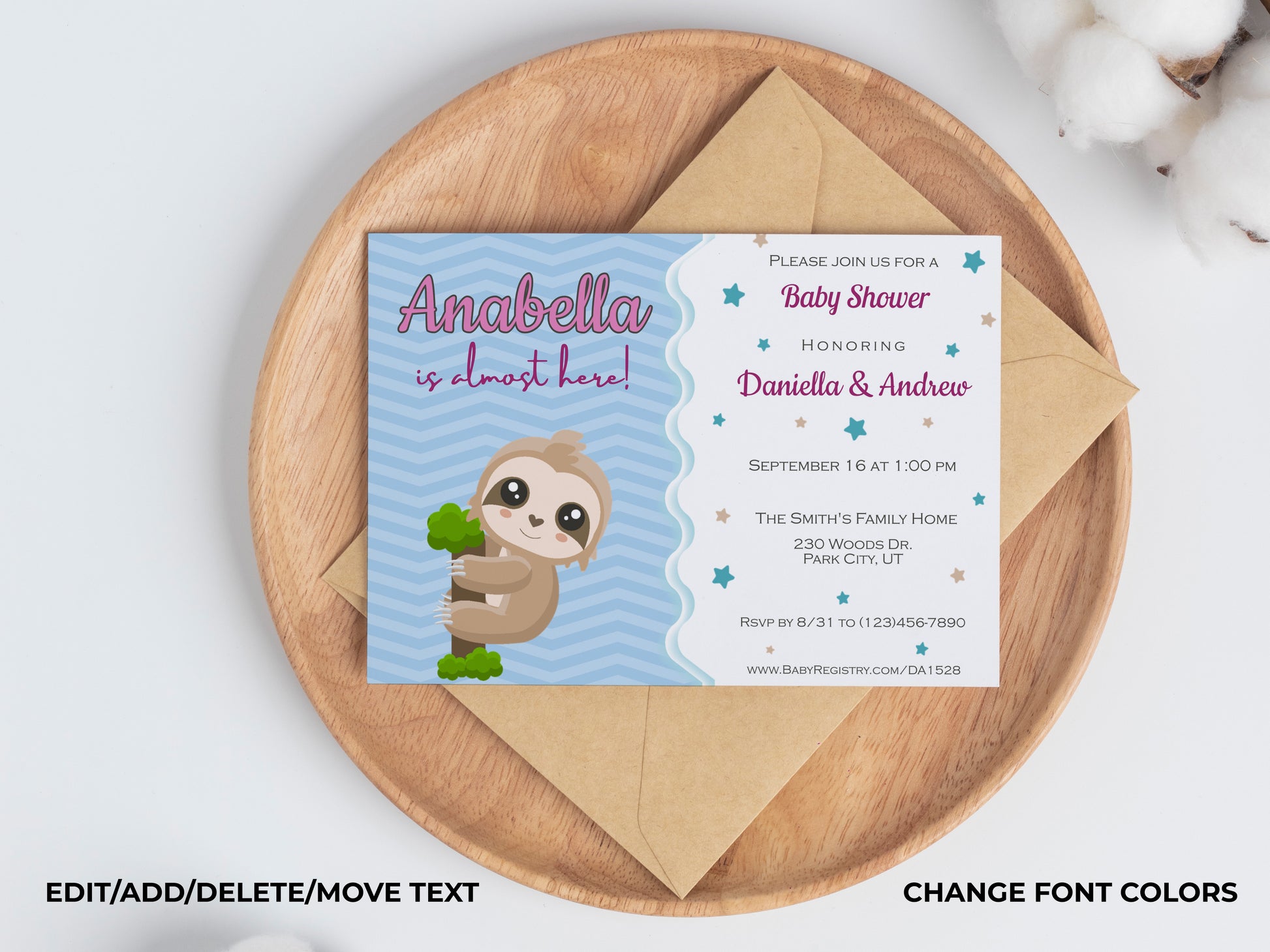 Baby Sloth blue Baby Shower Invitation Instant Digital Download