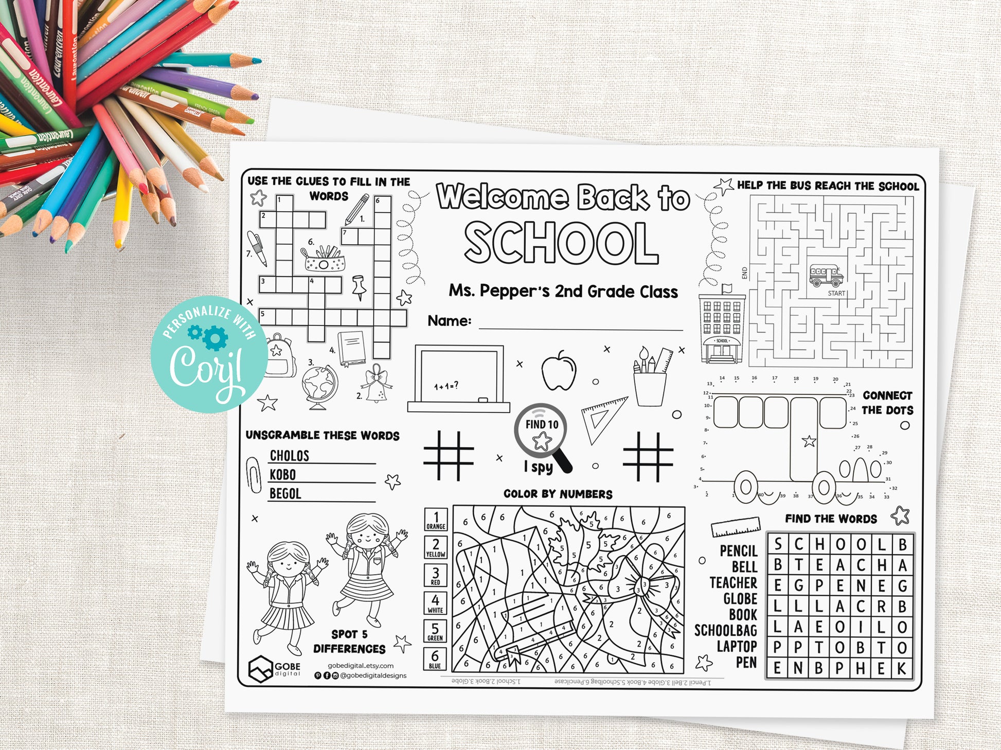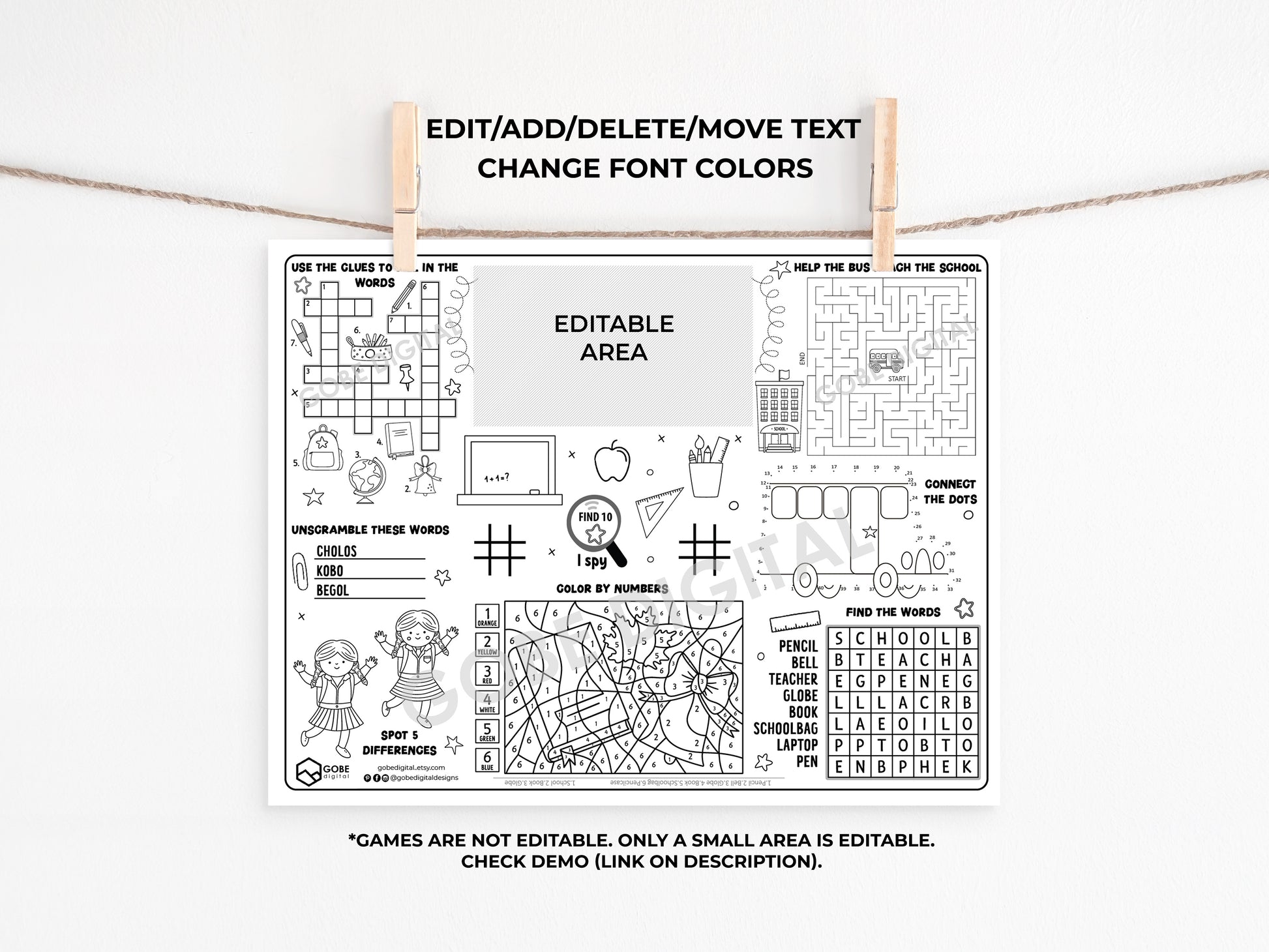 This listing includes 2 files: one letter size (8.5 x 11 inches) and a placemat size (11 x 14 inches).