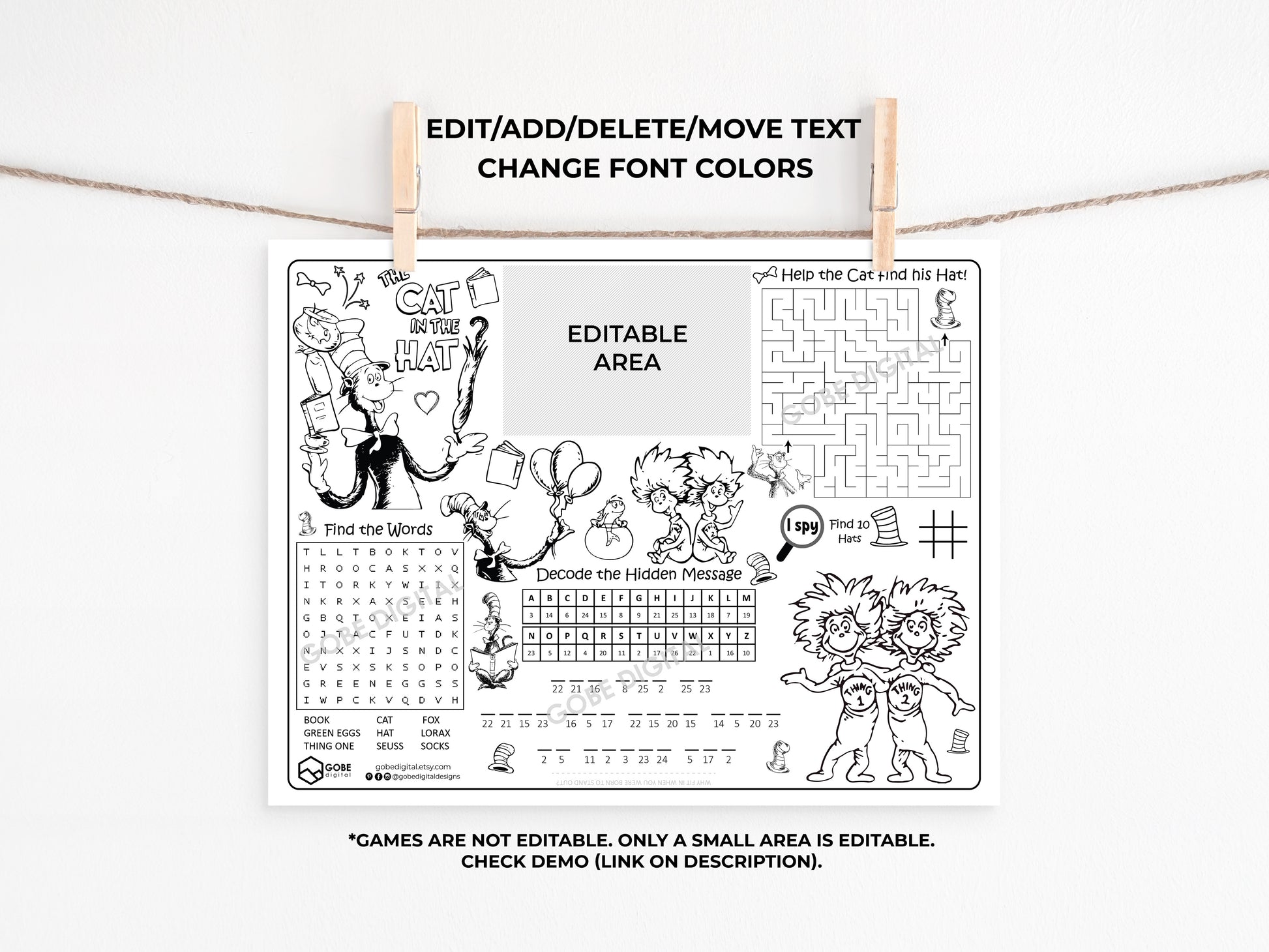 This listing includes 2 files: one letter size (8.5 x 11 inches) and a placemat size (11 x 14 inches).