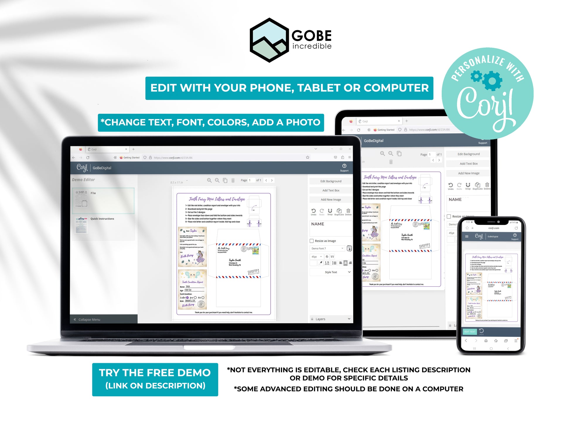 โ Not everything is editable, check demo for specific details