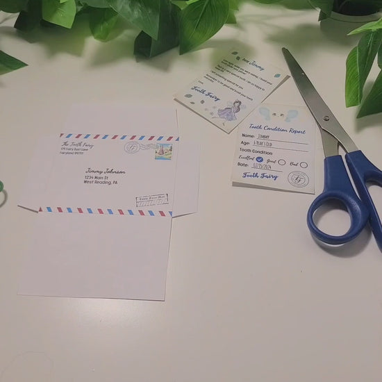 This listing includes 1 file: a US letter size page (8.5 x 11 inches) that includes one mini letter from the Tooth Fairy, one Tooth Condition Report and one envelope.