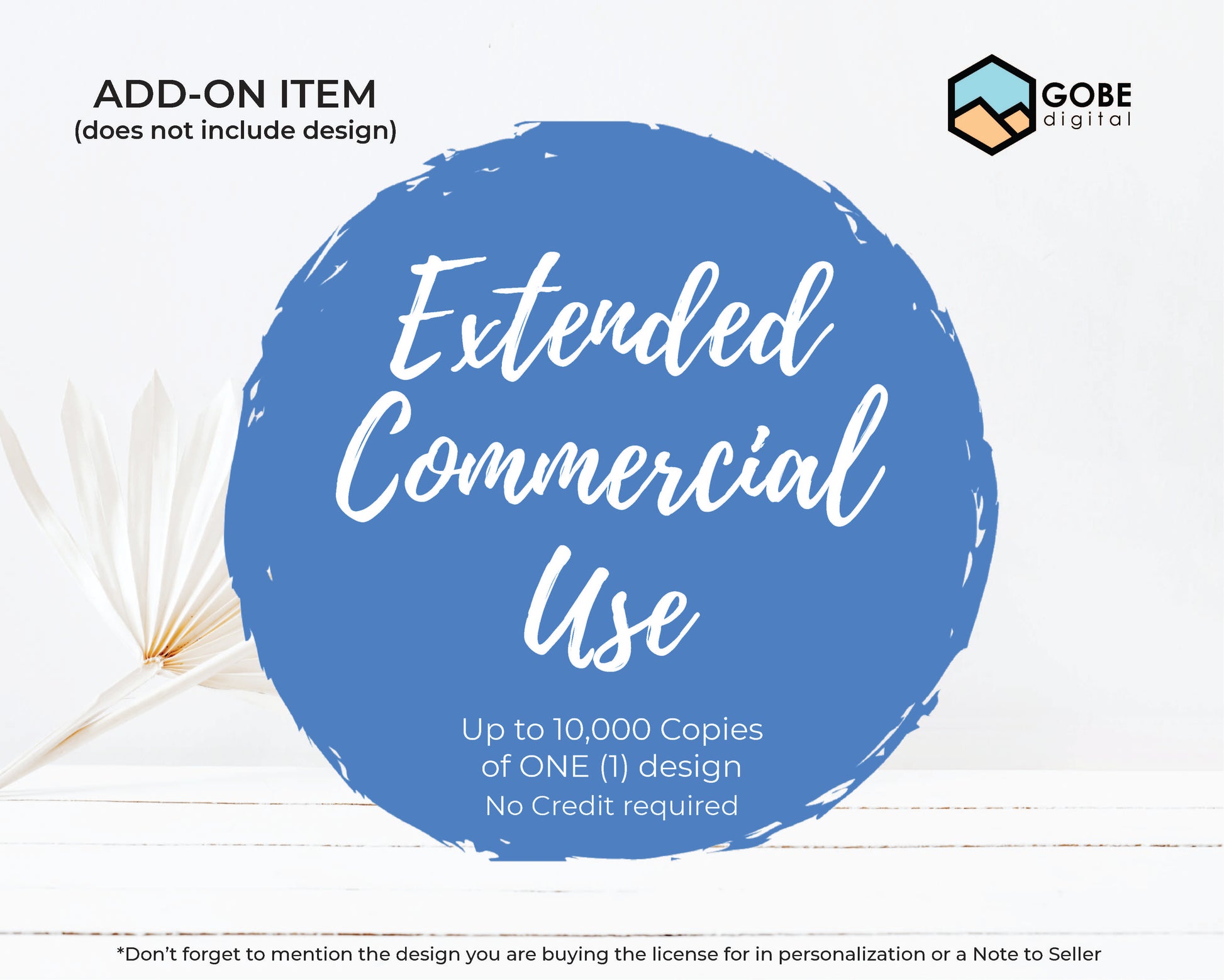 This license is for the extended commercial use (up to 10,000 units) of one of our designs with no credit given back to Gobe Designs.