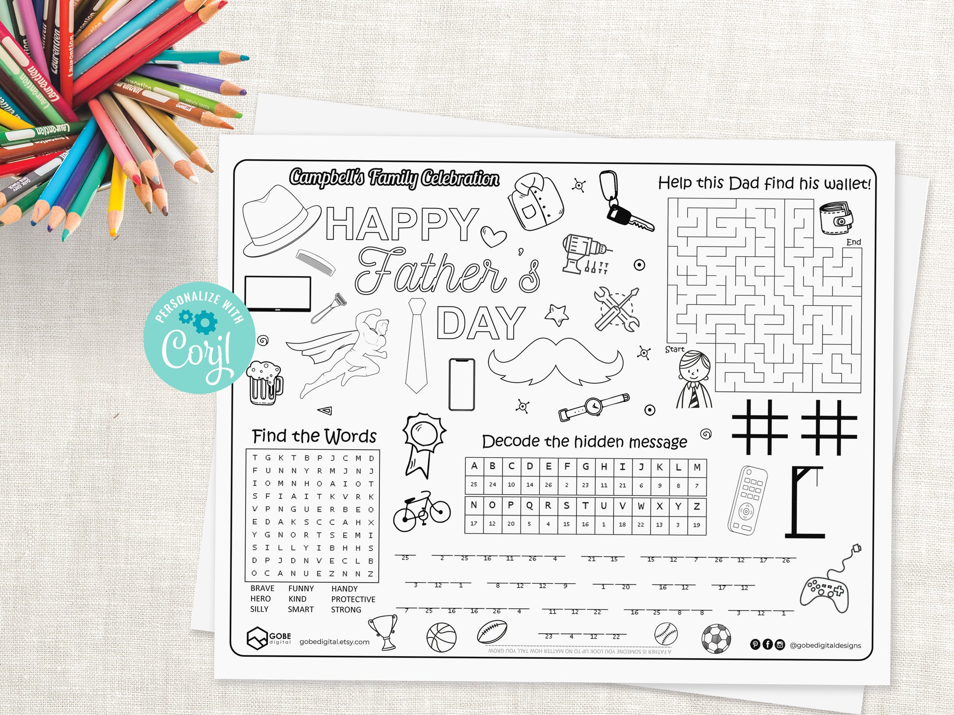 This listing includes 2 files: one letter size (8.5 x 11 inches) and a placemat size (11 x 14 inches).