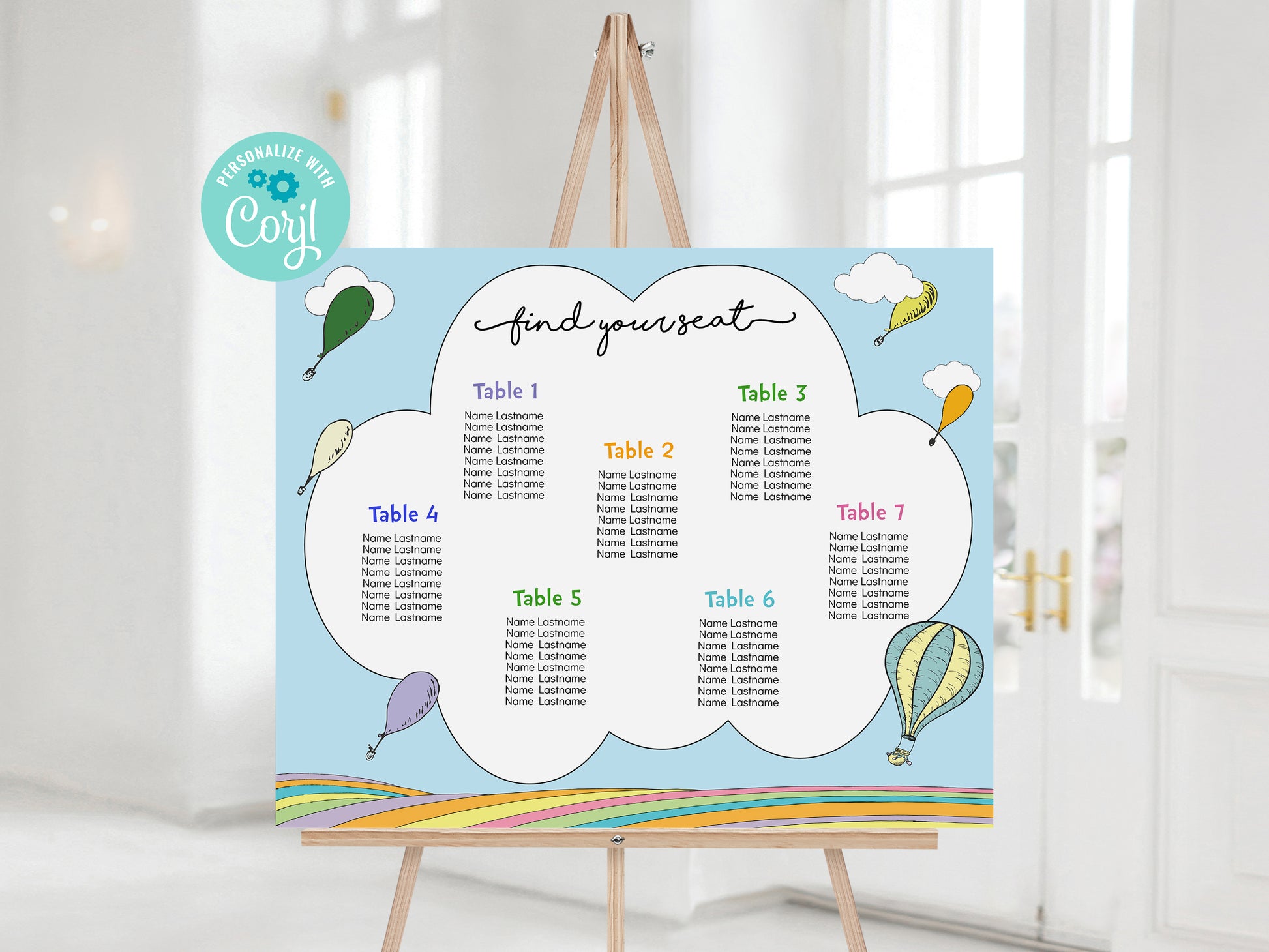 Hot Air Balloon Seating Chart 20 x 16 inches