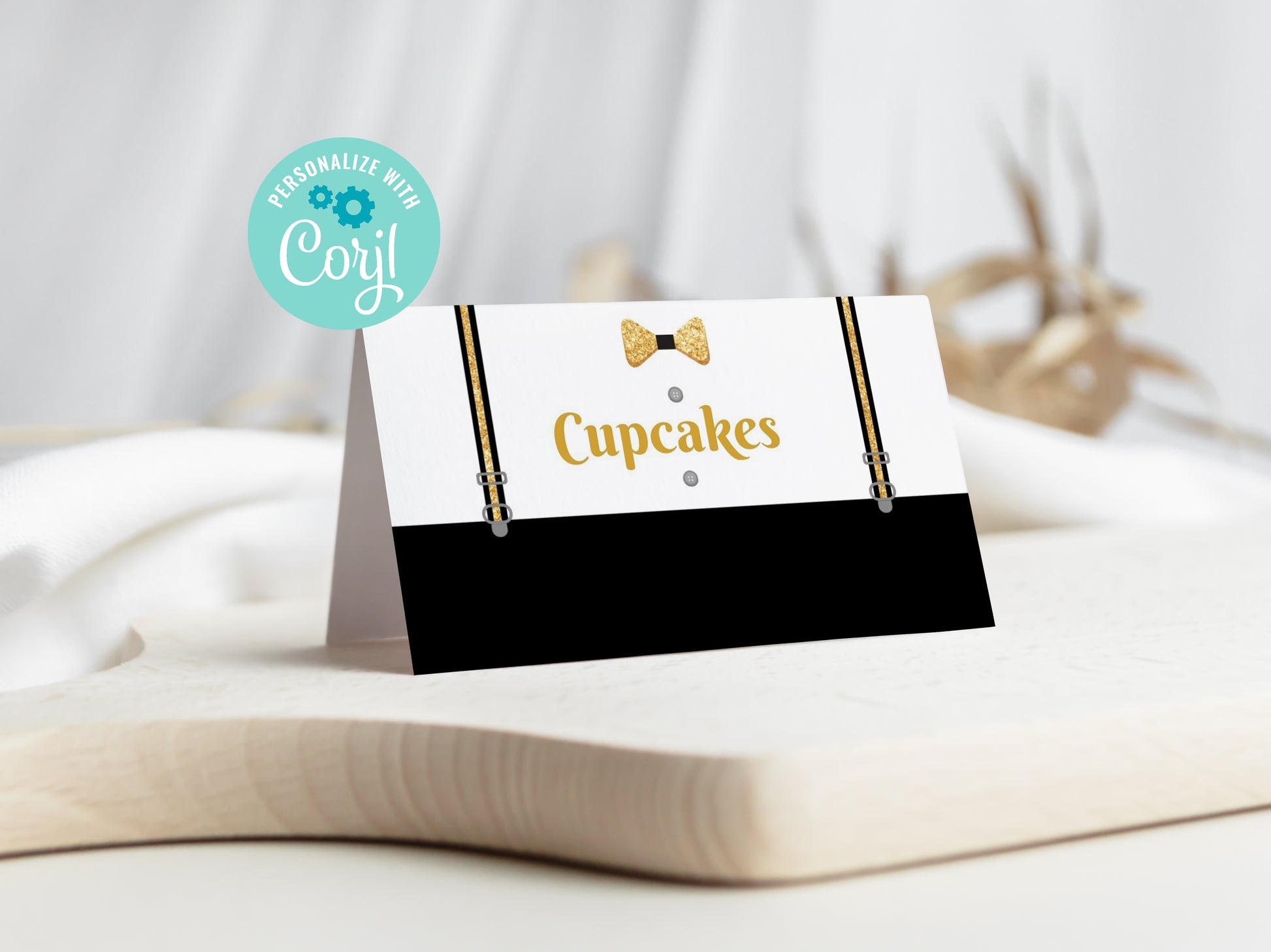 Little Gentleman Baby Shower Food Tent Labels - Little Gentleman Baby Shower Place cards 3.5 x 2 inches when folded in half. Edit with Corjl