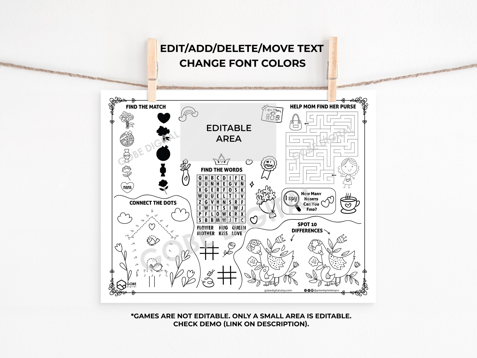 This listing includes 2 files: one letter size (8.5 x 11 inches) and a placemat size (11 x 14 inches).