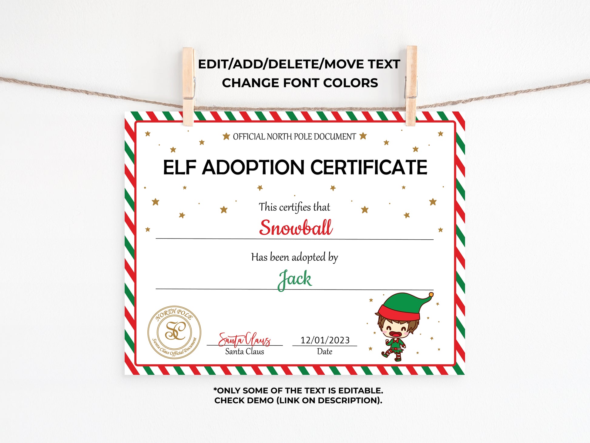 Santa's Official Elf Adoption Certificate for a boy