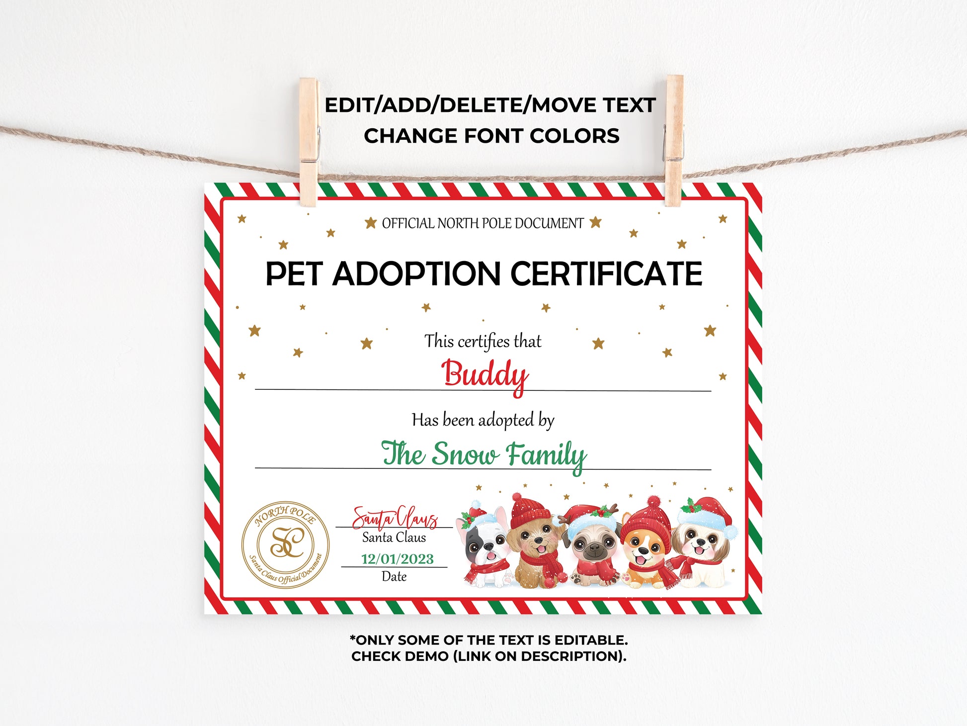Santa's Official Pet Adoption Certificate