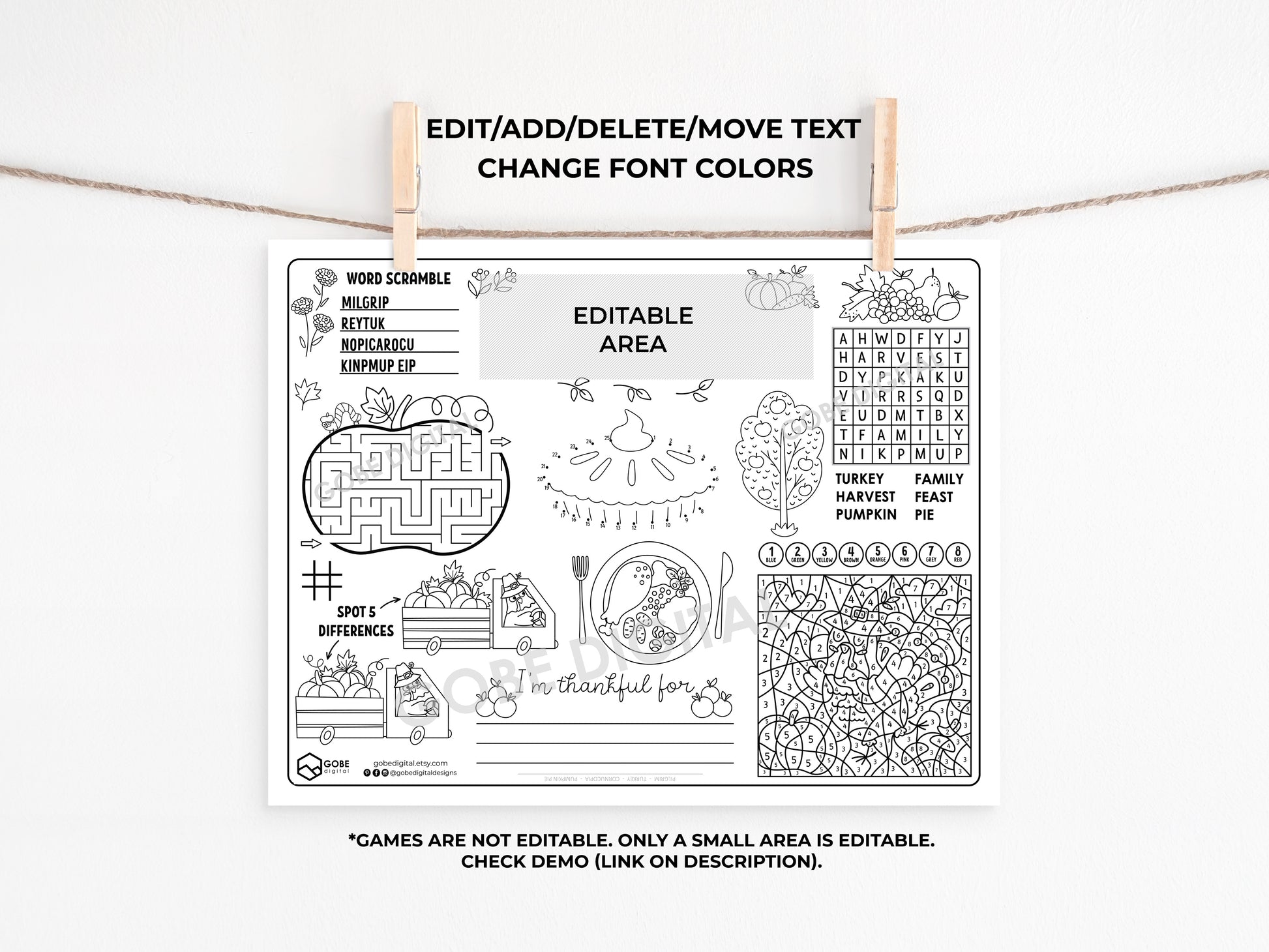 This listing includes 2 files: one letter size (8.5 x 11 inches) and a placemat size (11 x 14 inches).